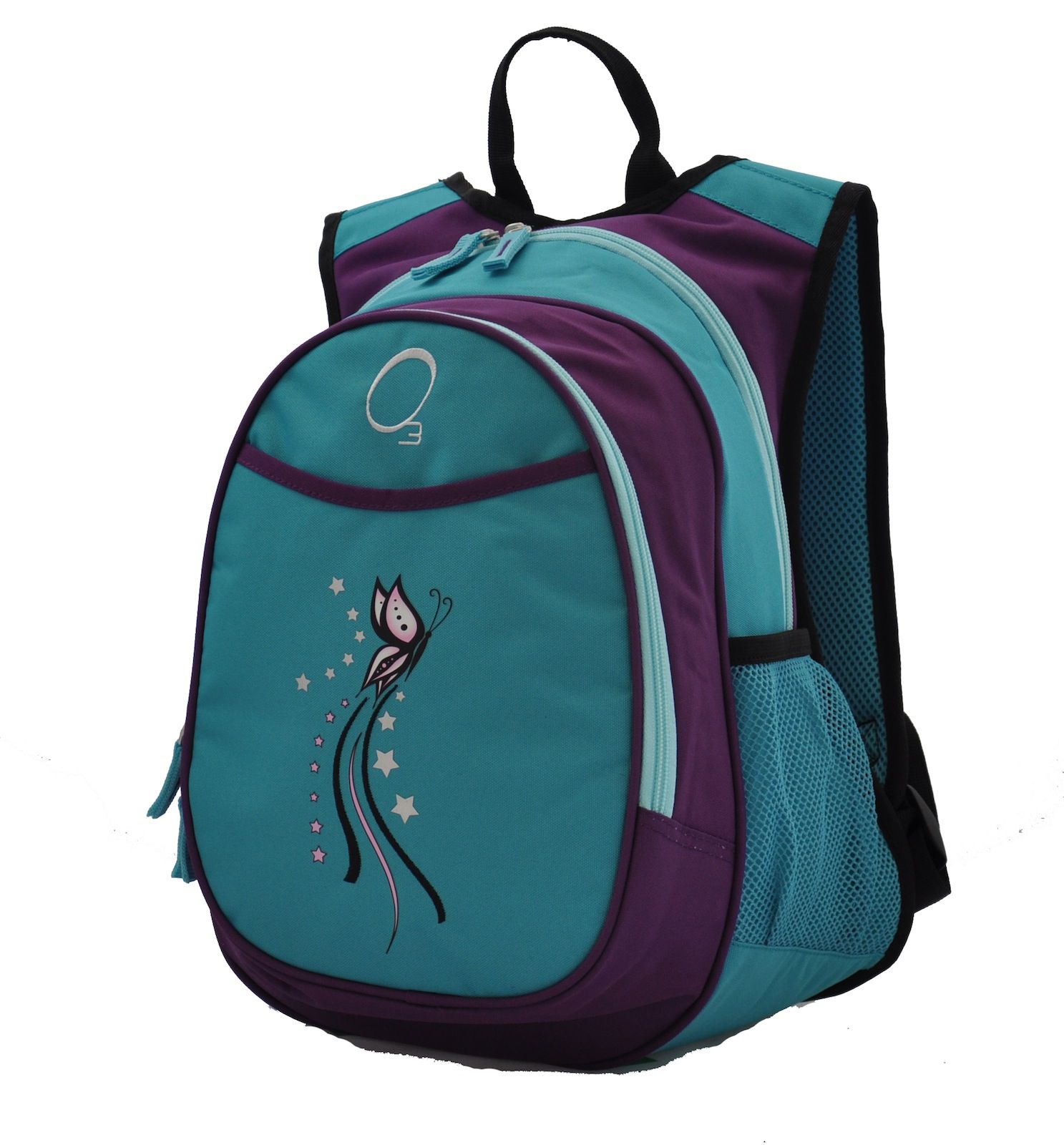 O3 Kids Pre-School Butterfly Backpack with Integrated Lunch Cooler Turquoise Butterfly. The O3 Kids All-In-One Backpack with Cooler is the perfect solution for active kids. The front pocket of the backpack is an insulated lunch cooler, so kids no longer have to tote an additional lunch bag! For ultimate comfort, the back features a padded breathable mesh lumbar section and the straps are constructed with the same padded breathable mesh. Such mesh helps to keep your child comfortable and cool. Additionally, the backpack measures 10 x 14.5 x 5.5 and is large enough to fit a standard size school folder. The interior of the main compartment features an organizer with pockets for supplies and slots for pen and pencil storage. The front of the backpack also features a pocket for easy to access storage. Drinks can be easily stored in the side drink pocket.